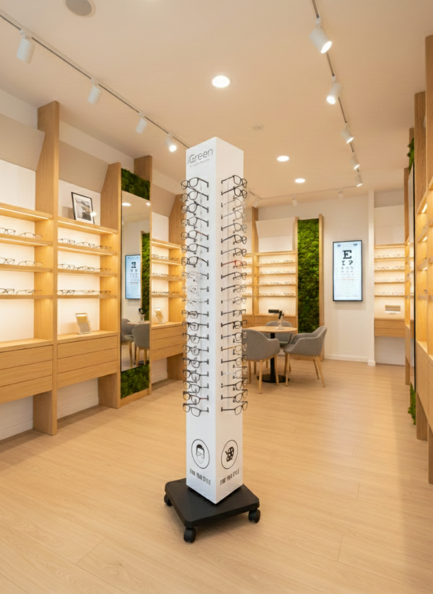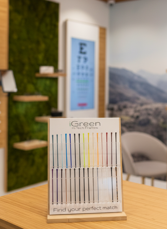 Showcase your creativity with our customizable temples display, featuring a full range of extra color temples from iGreen. This compact, elegant display lets your customers touch, compare, and choose their favorite colors—making the custom eyewear experience intuitive, engaging, and visually inspiring.